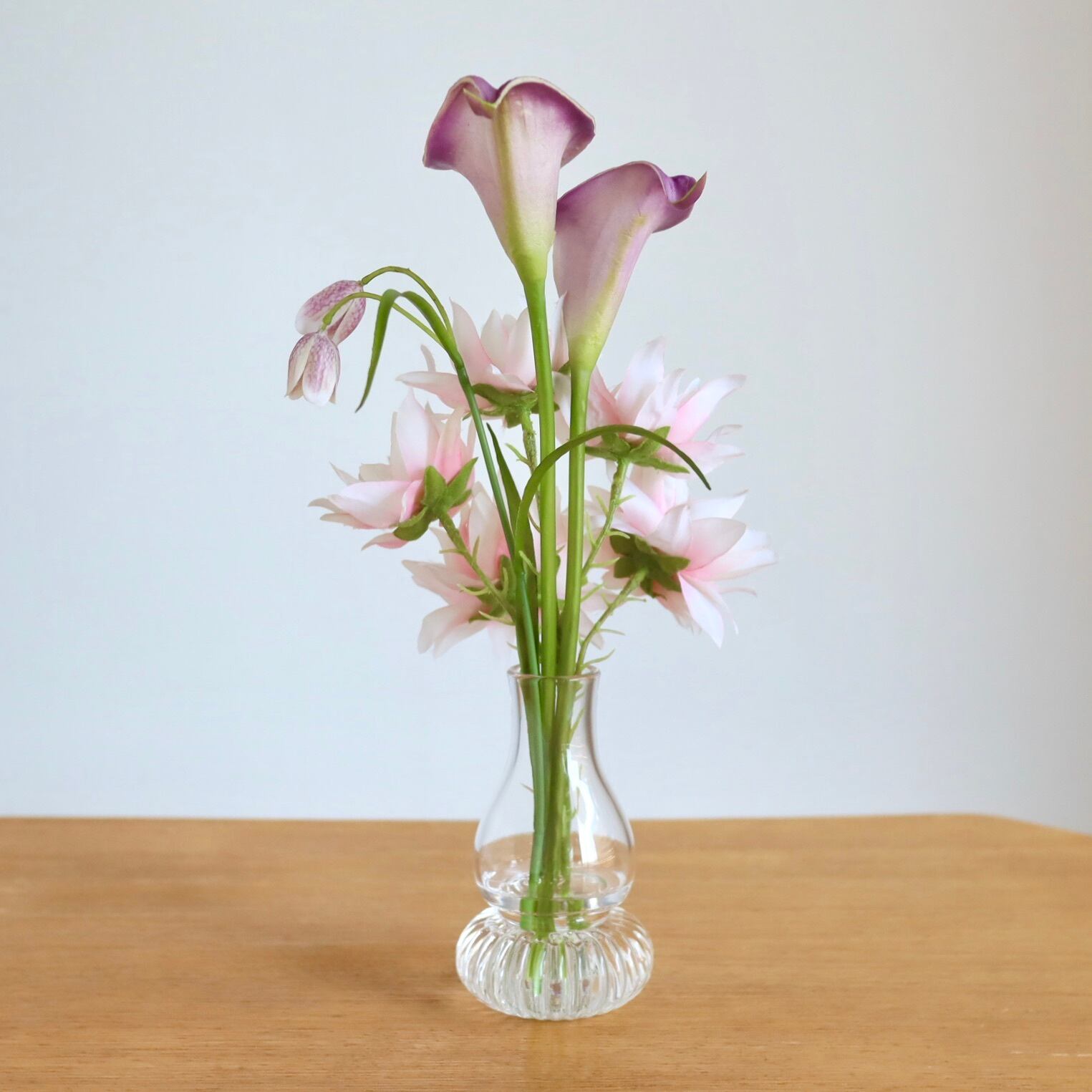 (ガラス花瓶の高さ12cm、底直径7cm)