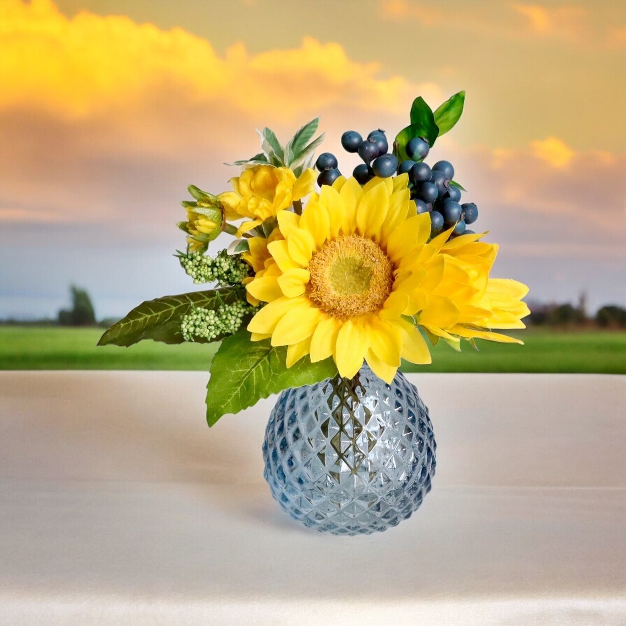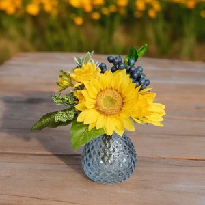 ひまわり ブルーベリー ガラス花瓶 ブルー 青 黄色 グリーン お誕生日祝い 父の日 喜寿 米寿 傘寿 父の日 インテリア 新生活 本棚飾り 書斎インテリア 誕生日プレゼント 開店祝いリゾート ギフトフラワー お誕生日 結婚祝い 結婚記念日 新築祝い 引越し祝い 受付 クリニック 待合室 入学祝い 卒業祝い 合格祝い 就職祝い 退職祝い 歓送迎会 ウェディング 出産祝い 改築祝い 新築祝い 仏花 お供え 両親贈呈品